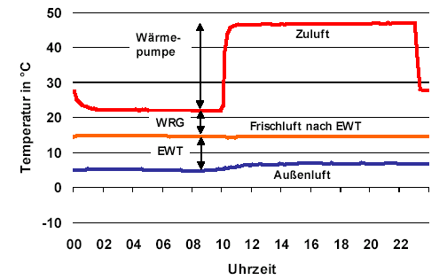 sorgen allein das Erdregister und die Wärmerückgewinnung für eine
