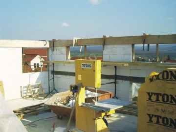 | Betonieren des Gurtes Nordwand für Auflager der Schwelle des Daches (Planzeichnung im Bereich des Fensters) | |
