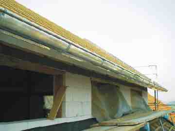 Fa. Münzing&Habersam hat mit dem Einbau der Dachrinnen (Titanzink) begonnen. |