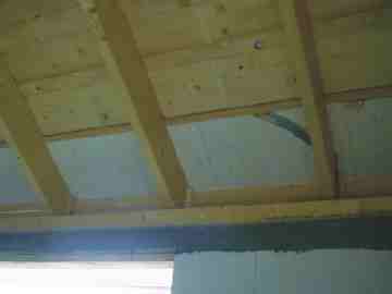 Auch die Dachschalung wurde vollständig geschlossen - Zimmermann/Dachdecker- eine solide Leistung: Kellerisolierung, Dachstuhl aufstellen, Dach eindecken, Stahlstützen setzen... und der Bauherr fand nur nach langer Suche eine einzige krumme Schraube, die ihm nicht gefallen hat. Schön, wenn Handwerker sauber arbeiten.