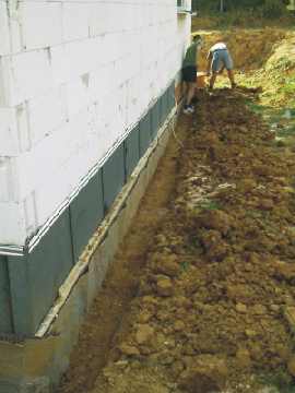 Ebenfalls wurde von Mitarbeitern der Fa. Laukhuf Haus um das Haus ein Graben ausgeschachtet, damit die Außendämmung demnächst sauber angebracht werden kann. |