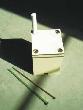 Ein weiteres Systemelement, das nächste Woche zum Einsatz kommen wird, ist ein sogenannter Montagezylinder für unsere Schiebeläden der Fa. Müller. Der Marmorit Passivhaus Montagezylinder besteht aus einem 18 cm dickem hochwärmegedämmten Hartkunststoff auf den zwei Purenitplatten aufgeklebt sind, die wiederum mit Kunststoff zwecks Wärmebrückenfreiheit getrennt sind. |