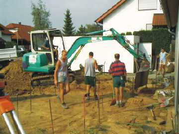 Am 05.08.2004 begann Fa. Schwab aus Bretzfeld mit dem Betonieren zweier Fundamente, die künftig zwei große Roste tragen werden. |