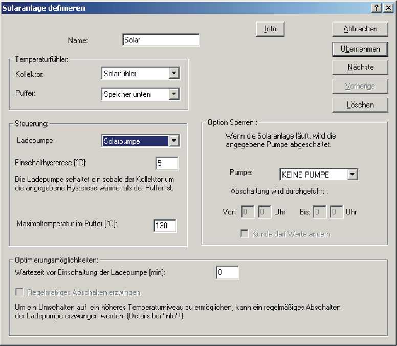 Definition der beiden beteiligten Fühler sowie der entsprechenden Ladepumpe.