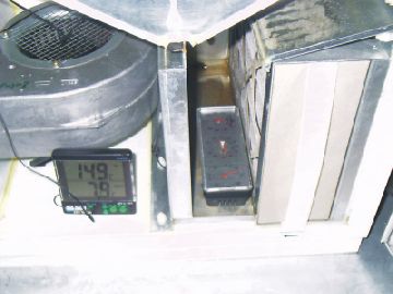 | Praktiker Klimastation im Schalldämpfer nach Kaltverdunster mist Zulufttemperatur / Feuchte nach Feuchteanreicherung, allerdings vor dem Luftheizregister | ![]() |