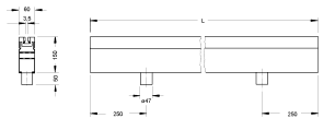MFTR Pass-Stück zum Übergang auf das LindabTransfer-System, eine Seite mit Muffenmass, andere Seite mit Transfer-Bord. |