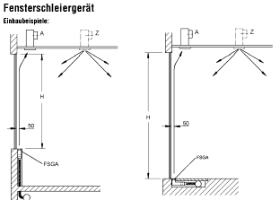 Das Fensterschleiergerät ist kastenförmig ausgebildet. Es besteht aus einem Kastenunterteil und einem leicht abzunehmenden Oberteil. Das Kastenoberteil hat in der Normalausführung einen geraden Spalt von 3,5 mm Breite. Auf besonderen Wunsch kann das Oberteil auch mit schrägem Spalt oder aber auch mit anderen Spaltgrößen hergestellt werden. Das Kastenunterteil besitzt einen Lochblecheinsatz mit hohem Druckabfall zur gleichmäßigen Verteilung und gerader Ausströmung der Luft. Auf besonderen Wunsch kann eine Lochblechdrossel oder eine verstellbare Drossel angebaut werden. Anwendung: Fensterschleiergeräte dienen im wesentlichen dazu im Winter die Transmissionsverluste zu decken und im Sommer die einfallende Transmissionswärme auszugleichen. Mit Hilfe von Fensterschleiergeräten soll das Beschlagen der Fenster weitgehend verhindert werden und der an den kalten Scheiben herabsinken Kaltluft entgegenwirken. Nachts und an Wochenenden verhindern Fensterschleiergeräte, bei abgeschalteter Hauptanlage, Geruchsbildung durch stagnierende Luft. | Der Volumenstromregler ermöglicht es, den Volumenstrom im Kanal konstant zu halten, bzw. über eine Zwangssteuerung Vmin, Vmax oder " ZU" einzuregulieren. Auch kann der Volumenstromregler als Raum- oder Kanaldruckregler eingesetzt werden. In VAV-Systemen kann der Volumenstromregler in Abhängigkeit der Zulufttemperatur (Raumtemperaturregler) variable Volumenströme zwischen Vmin und Vmax regulieren. | Der Schlitzauslass-Anschlusskasten Audix reduziert die Installationskosten, da auf zusätzliche Telefonieschalldämpfer verzichtet werden kann und durch den eingebauten Telefonieschalldämpfer werden Platzkapazitäten im Flurbereich gewonnen. Der Telefonieschalldämm-Anschlusskasten Audix ist von den Abmessungen auf die Anforderungen im Trockenbau angepasst und kann komplett in leichte Trennwände integriert werden, wodurch die Zusammenarbeit zwischen den Gewerken Trockenbau und Klimatechnik erleichtert und Montagezeit eingespart wird. Der Auslaß kann nachträglich mittels Federbefestigung montiert werden, um eine Beschädigung des Auslasses während der Bauphase zu vermeiden. Als Zubehör sind Öffnungsabdeckungen aus verzinktem Stahlblech lieferbar, die während der Bauphase eingesetzt werden können, um eine Verschmutzung des Kastens zu verhindern. |